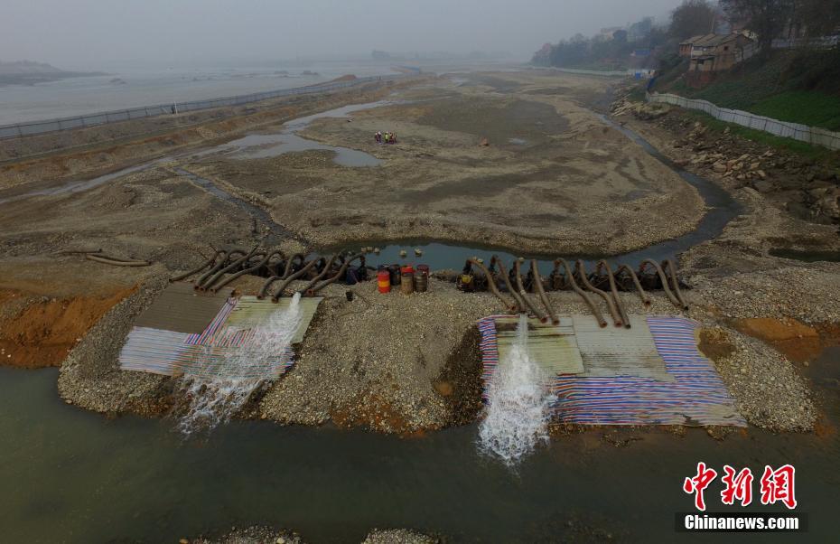 1月5日,四川彭山,考古發(fā)掘現(xiàn)場(chǎng)緊靠岷江,抽水機(jī)正不停排水。當(dāng)日,四川眉山市彭山區(qū)江口沉銀遺址水下考古發(fā)掘全面啟動(dòng),發(fā)掘時(shí)間預(yù)計(jì)3個(gè)月。考古發(fā)掘結(jié)束后,當(dāng)?shù)貙⒒I建張獻(xiàn)忠江口沉銀博物館。中新社記者 劉忠俊 攝