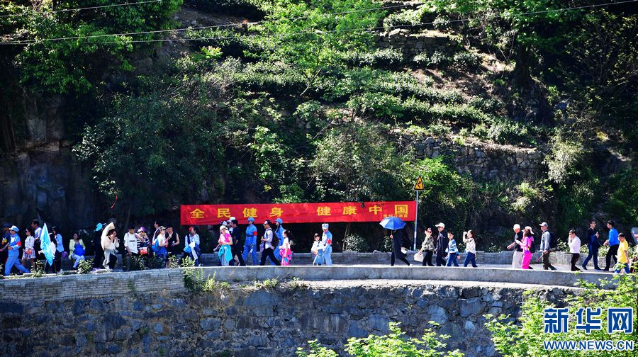•    4月23日,徒步愛好者在河南省商城縣西河景區內。當日,2017年全國徒步大會(西河景區站)在河南省商城縣舉行,本次徒步大會吸引了近2萬名徒步愛好者參加。新華社記者馮大鵬攝