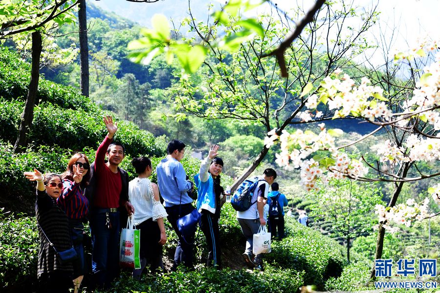 •    4月23日,徒步愛好者在河南省商城縣西河景區內。