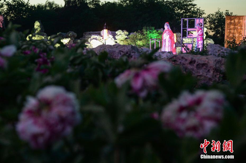 4月26日晚,園林版昆曲《牡丹亭》在北京圓明園含經堂遺址牡丹叢中上演。時值含經堂萬株牡丹花期,此番世界級皇家園林與昆曲的攜手演繹的“園林+戲曲”的首度跨界組合,也為現場觀眾帶來一場鮮活的文化體驗。中新社記者 崔楠 攝 -