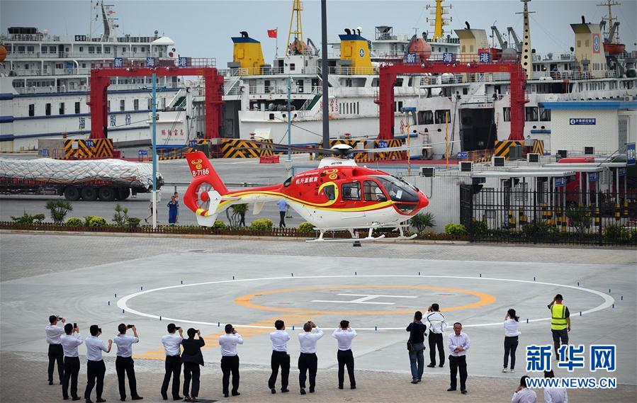 4月28日,直升飛機(jī)在海口新海港碼頭降落。當(dāng)日,北京首航直升機(jī)股份有限公司聯(lián)合海南港航控股股份有限公司在海口新海港舉行瓊州海峽直升機(jī)擺渡飛行開航儀式。首航直升機(jī)運(yùn)營的空客H135型直升機(jī),從海南省海口新海港碼頭起飛,飛往廣東省湛江市徐聞海安港,空中飛行時(shí)間僅需10分鐘,比傳統(tǒng)輪渡快了2個(gè)多小時(shí),單人票價(jià)為898元。新華社記者郭程攝 -