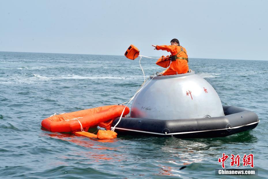 16名中國(guó)航天員和2名歐洲航天員,8月21日在山東省煙臺(tái)市附近海域圓滿完成了海上救生訓(xùn)練任務(wù)。圖為布放在后甲板上的神舟飛船模擬返回艙。海上救生訓(xùn)練設(shè)置理論培訓(xùn)、單項(xiàng)操作訓(xùn)練和綜合訓(xùn)練三個(gè)部分,這是中國(guó)航天員首次在真實(shí)海域開展救生訓(xùn)練。 中新社記者 張素 攝 -