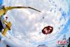 16名中國(guó)航天員和2名歐洲航天員,8月21日在山東省煙臺(tái)市附近海域圓滿完成了為期17天的海上救生訓(xùn)練任務(wù)。圖為訓(xùn)練期間,8月2日,航天員乘坐救生吊籃。 中新社發(fā) 朱九通 攝 -