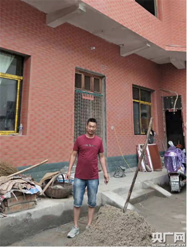 米坪鎮河西村脫貧戶劉建偉新建的二層樓正在貼面磚(央廣網發 通訊員陳紅源 供圖)