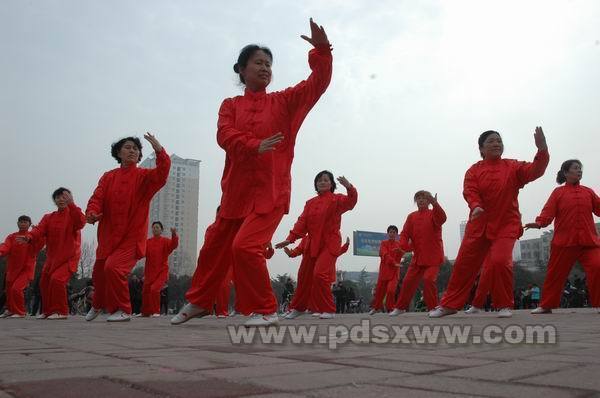 央廣網河南分網消息 據平頂山新聞網報道:2月21日上午,湛河區2014年全民健身活動月啟動儀式在河濱廣場舉行。該區16支健身隊上場表演了太極拳、廣場舞、健身球等健身項目,精彩的表演博得現場觀眾的陣陣掌聲。(李向平 攝)