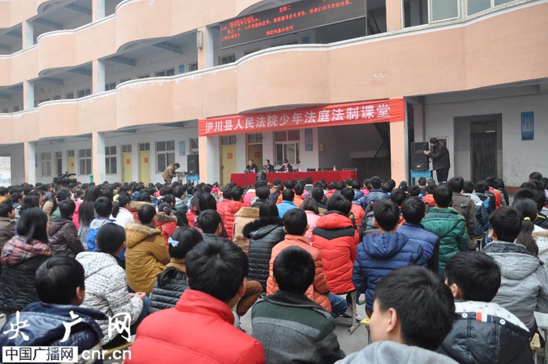 央廣網河南分網消息 2月25日,伊川法院在伊川雙語實驗學校開設新年“法制一堂課”,為該校1200余名中學生送上了一堂深刻、生動、精彩的法制教育課。