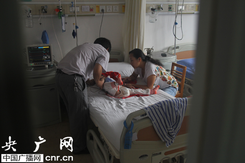 央廣網河南分網消息(記者 丁玉璽)9月10日上午,我們的記者在鄭州市第七人民醫院的病房里見到了李錦奇,現在的他看起來和普通的孩子似乎沒有多少區別,可誰能想到,就在幾天前他還躺在重癥監護室里同病魔進行著斗爭,站在病房的門外,我們看到李錦奇的父母正小心地守護著這個脆弱而偉大的生命。