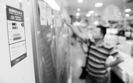昨天,在航海路附近的一家美的專賣店,銷售人員說,已經(jīng)聽說了這個政策,不過主要針對一級和二級能效的產(chǎn)品,三級能效產(chǎn)品不享受補貼。