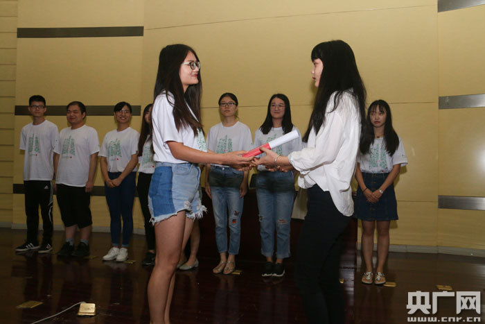 在尚鋼的帶動下,現場還進行了青春接力活動。外國語學院的優秀畢業生將記錄自己榮光與奮斗的成績單作為接力棒,傳遞給大一學生,激勵他們不懈努力、不忘初心。