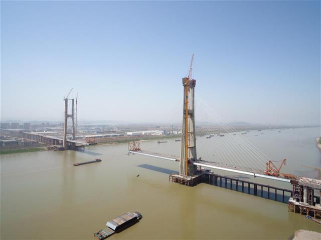據介紹,安九鐵路鳊魚洲長江大橋2017年10月開工建設,預計年內大橋主體工程完工。大橋北側位于湖北黃梅縣,南側位于江西九江市。大橋為四線鐵路大橋,其中兩線為高鐵線,時速350公里;預留兩線為客貨線,時速200公里。鳊魚洲長江大橋為主跨672米、全長1320米的雙塔雙索面交叉索斜拉橋,是國內首座交叉索斜拉橋。