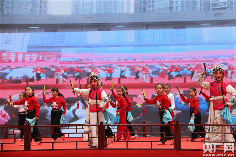 過大年、唱大戲,是春節(jié)的傳統(tǒng)文化活動不可缺少的一部分。當(dāng)天下午,“梨園春韻”作為首場演出,用戲曲為“戲窩子”江漢添彩。傳統(tǒng)京劇《貴妃醉酒》、現(xiàn)代京劇《紅色娘子軍》、漢劇小戲《春回戲碼頭》、楚劇《打金枝》選段、黃梅戲《天仙配》等經(jīng)典戲曲選段精彩上演,博得現(xiàn)場觀眾的陣陣掌聲。