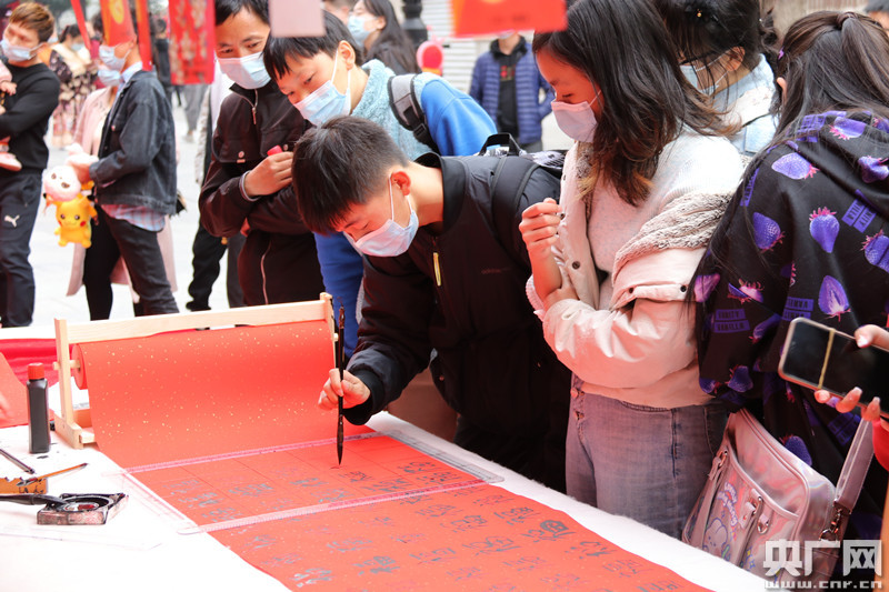 圖為:市民們通過“執(zhí)筆寫福”傳達(dá)對美好生活的祝愿 央廣網(wǎng)發(fā) 李磊攝