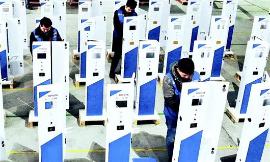 2月26日,湖北追日電氣股份有限公司(襄陽)員工在裝配充電樁。近年來,該公司在行業(yè)內(nèi)率先開發(fā)出歐標(biāo)和日標(biāo)等領(lǐng)先水平的電動汽車充電產(chǎn)品,并成功應(yīng)用于法國、德國、日本等30多個(gè)國家汽車廠商,走在了“充”向世界的前列。