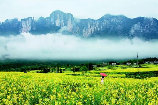 春分日,恩施大峽谷云霧繚繞,與萬仞絕壁和油菜花一起,繪就一幅水墨畫卷。 (視界網 肖華林 攝)