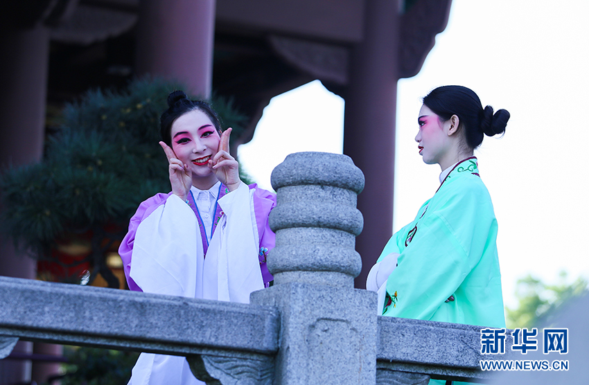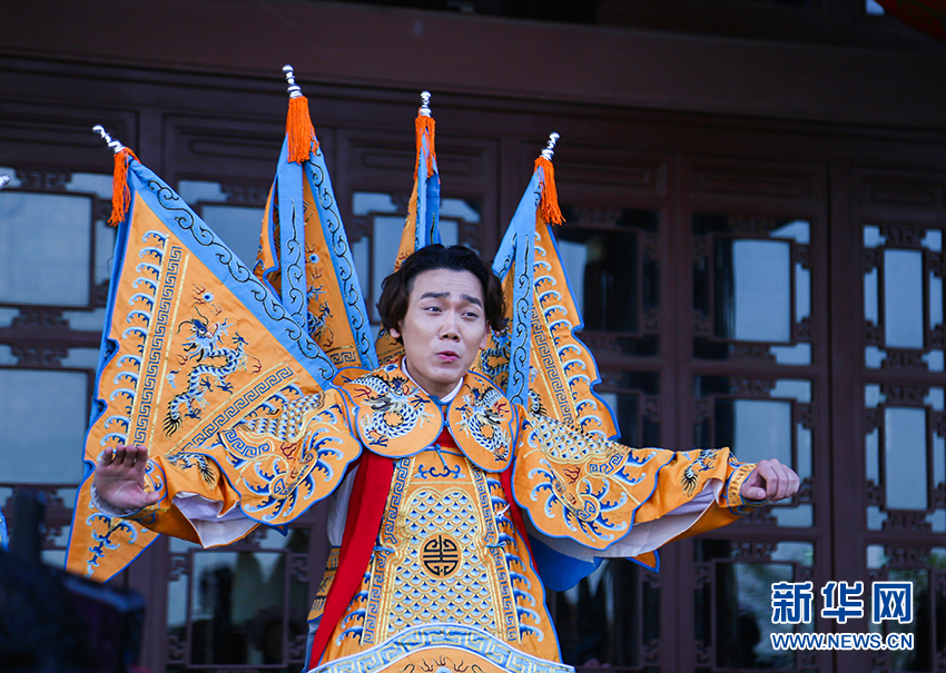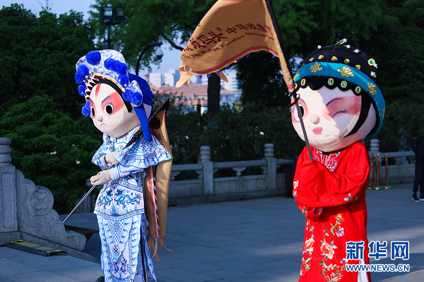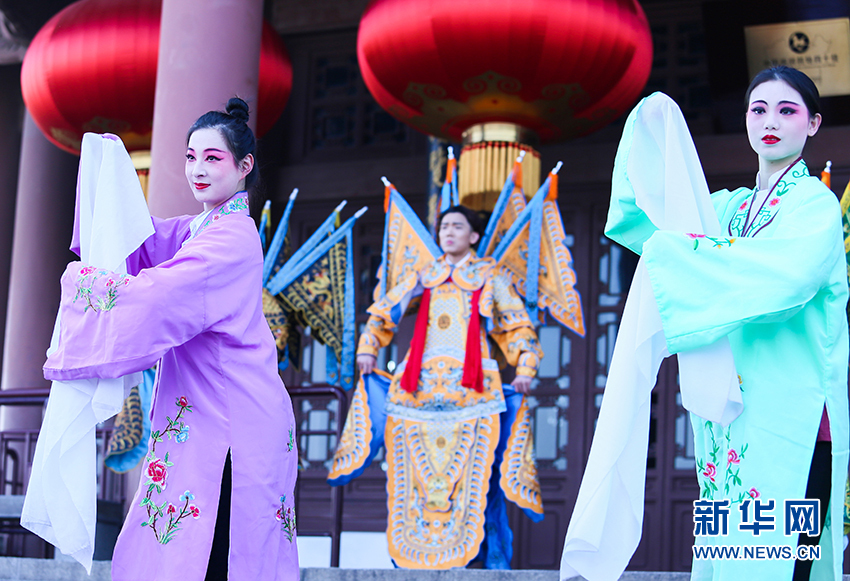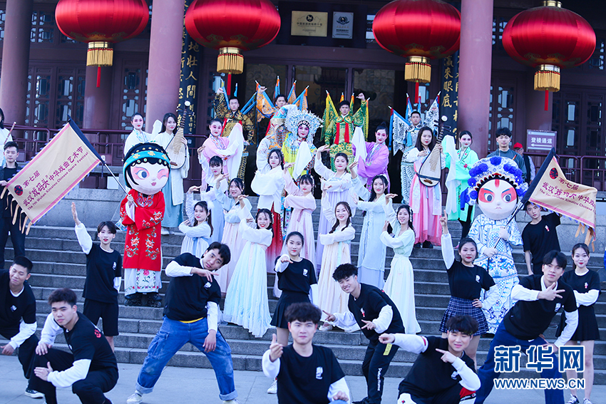 圖為7日在黃鶴樓下舉辦的戲曲快閃活動現(xiàn)場。新華網(wǎng)連迅 攝