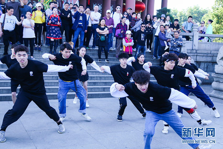 新華網(wǎng)武漢4月7日電(連迅)一場精彩的戲曲快閃活動7日在武漢黃鶴樓下舉行。當(dāng)天來自中南財(cái)經(jīng)政法大學(xué)、武漢音樂學(xué)院等高校的60多位戲曲愛好者不但表演了街舞等現(xiàn)代舞蹈,還身著戲服表演了傳統(tǒng)戲曲唱段《定軍山》《八板》(西皮)等。在國內(nèi)四大名樓之一的黃鶴樓下,傳統(tǒng)文化與現(xiàn)代藝術(shù)相融合,吸引眾多游客駐足欣賞。