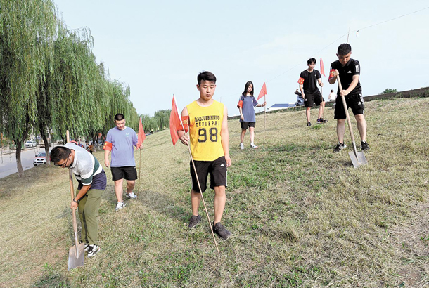 7月14日,黃梅縣小池鎮(zhèn)新河橋社區(qū)“00后”大學(xué)生組成青年突擊隊,在黃廣大堤小池段巡堤查險。長江發(fā)生嚴重汛情后,十幾名“00后”大學(xué)生主動向社區(qū)提出申請參加抗洪。