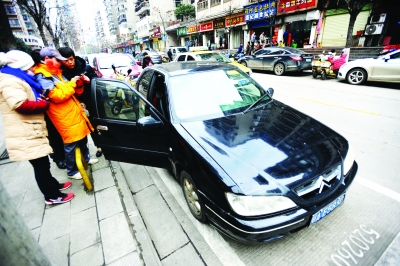 昨日,武昌尚隆路停車位旁,市民正在補繳停車費。記者苗劍 攝