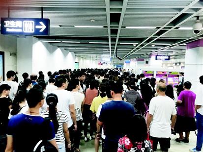 圖為:昨日18時23分,楚河漢街站內(nèi)站滿了等待安檢的市民