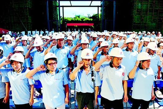 圖為:中天建設集團舉行工會新會員集體入會宣誓。