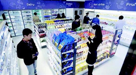 17日上午,京東無人超市60平方米的空間里,人潮涌動。雖然沒有店員值守,但京東并不怕有人順手牽羊。因?yàn)槔锩嬗?0個(gè)攝像頭,一旦有人行為不檢點(diǎn)被拍到,下次他將進(jìn)不了超市。