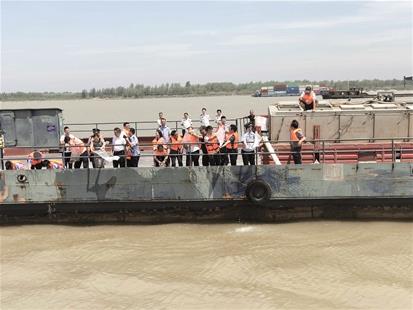 圖為:昨日上午,在長江嘉魚縣潘家灣鎮汽渡碼頭,長航警方聯手檢察院、漁政、海事、水產等部門,開展非法捕撈案的公益訴訟暨魚苗放生活動。5名非法電魚者購買250萬尾魚苗放生長江,其中兩人到現場用實際行動彌補自己的錯誤。