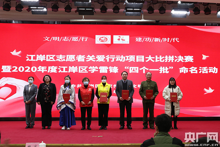 央廣網武漢3月5日消息(李磊 譚睿 劉培 李珊)關愛空巢老人送溫暖,接力為居民買菜購藥,魔術助力兒童心靈成長,治愈漫畫溫暖人心…為進一步傳承雷鋒精神,向建黨100周年獻禮,3月5號,在武漢市江岸區志愿者關愛行動項目大比拼決賽暨全區學雷鋒志愿服務“四個一批”命名活動現場,12個優秀志愿服務項目登臺路演,分享志愿服務故事,展示志愿者獨特風采。
