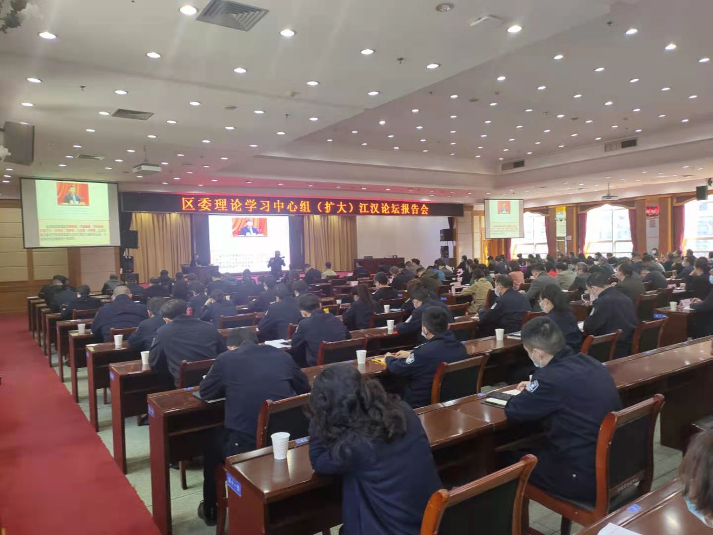 央廣網武漢3月25日消息(記者張迪 通訊員朱素芳 鄧文錦)3月25日下午,武漢市江漢區委理論學習中心組(擴大)舉辦“江漢論壇”報告會。會上,武漢市委黨校教授翟一博作黨史學習教育輔導報告,江漢區委、區人大常委會、區政府、區政協領導班子成員及各街道各部門各單位黨政主要負責人參加學習。