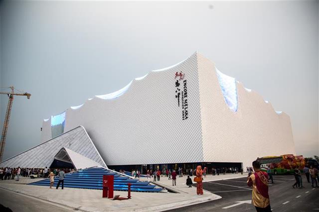 馬六甲印象歌劇院是馬六甲最大單體公共建筑,可同時(shí)容納2000名觀眾。主體共6層,結(jié)構(gòu)凈高33.6米,總建筑面積68796.5平方米。中建三局項(xiàng)目執(zhí)行經(jīng)理介紹,在項(xiàng)目早期概念設(shè)計(jì)中,建筑外形整體像一片翠綠的荷葉,細(xì)節(jié)部分也融入了中國(guó)陶瓷、絲綢、茶葉等諸多元素。在項(xiàng)目建設(shè)中,業(yè)主出于成本與工期的考慮,改變了整個(gè)建筑的外形,整體呈四方形,藍(lán)色的建筑外套白色的幕墻,簡(jiǎn)潔大方,對(duì)映著馬六甲海峽的藍(lán)天白云,美輪美奐。
