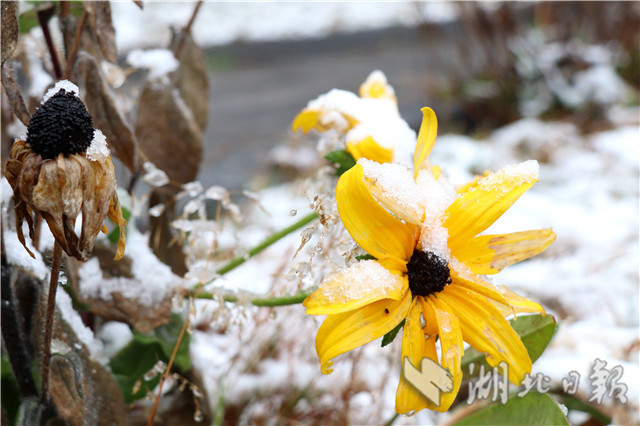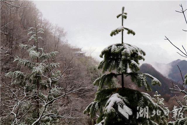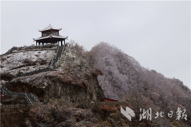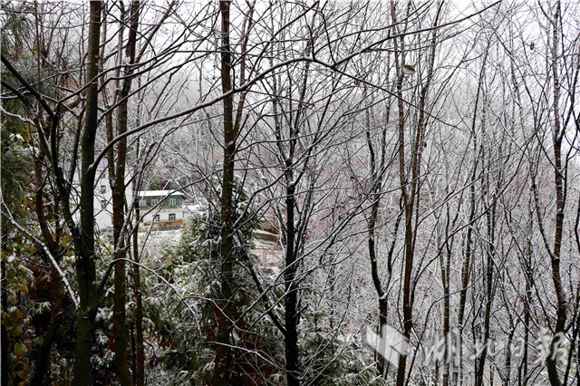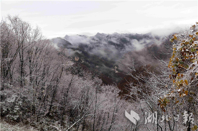 11月6日,在保康縣馬橋鎮(zhèn)堯治河村梨花山拍攝的雪景。當(dāng)日,受冷空氣影響,保康縣馬橋鎮(zhèn)、龍坪鎮(zhèn)等海拔1200米以上的高山地區(qū)降下今年入秋以來(lái)第一場(chǎng)雪。(視界網(wǎng)楊韜張強(qiáng)攝)