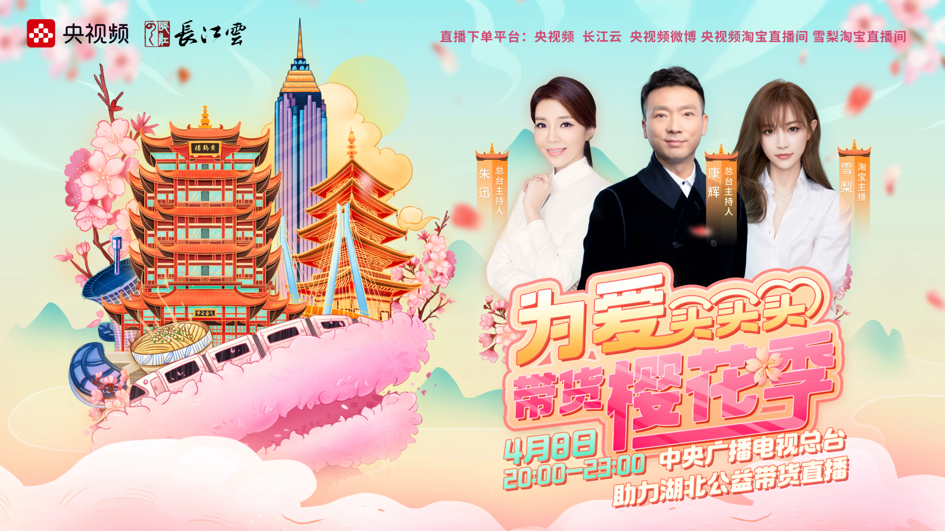 今晚(4月8日)8:00-11:00,淘寶主播雪梨將接棒“小朱配琦”組合,攜手央視名主播康輝、朱迅一起再次為湖北產品助力,央視頻、長江云、雪梨淘寶直播間將全程直播。