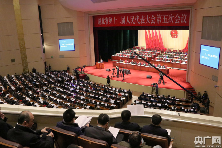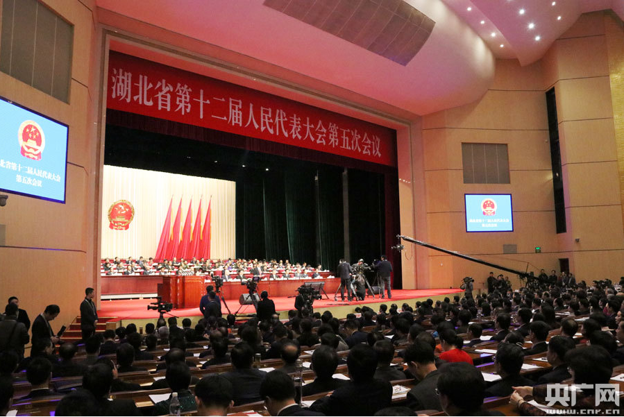 央廣網武漢1月15日消息(記者熊峰 張卓)1月15日上午9時,湖北省第十二屆人民代表大會第五次會議在武漢市洪山禮堂開幕。湖北省人民政府代理省長王曉東向大會作政府工作報告,報告分為2016年工作回顧、2017年工作重點和著力建設人民滿意的政府三部分。 -