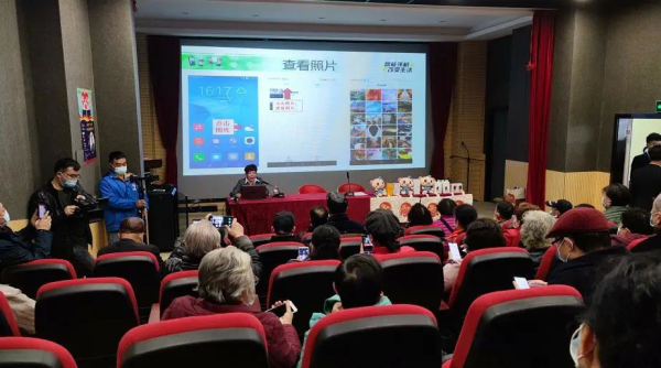 江岸電信公司科技志愿者通過現(xiàn)場演示、ppt展示的方式,為現(xiàn)場老年人詳細(xì)講解智能手機(jī)的應(yīng)用方法,并就老年人常用的添加微信好友、語音發(fā)送、Wi-Fi設(shè)置等功能進(jìn)行分步演示,實操教學(xué)。