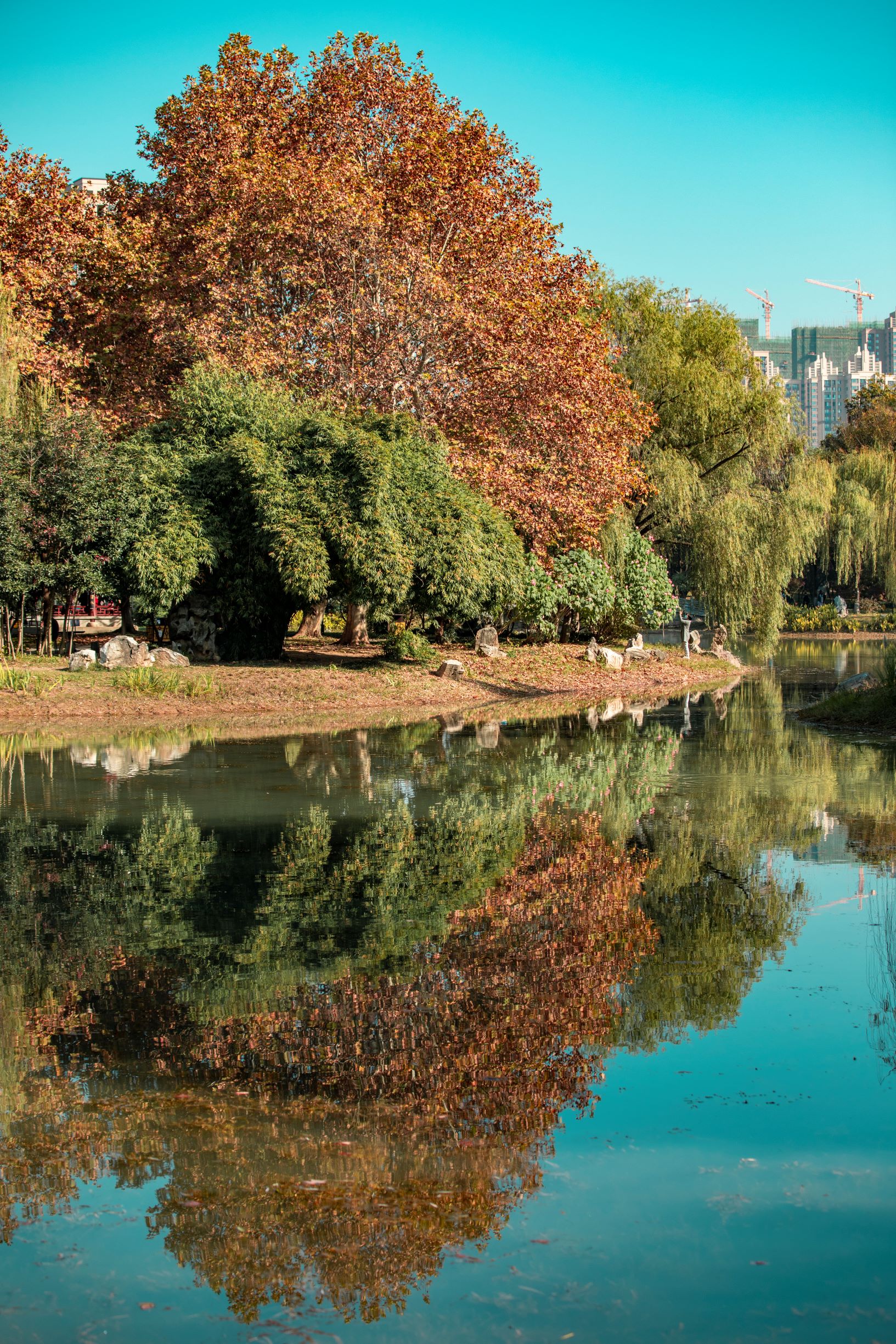 堤角公園“前身”為種苗場,本無湖。為打造出“江南水鄉”景致,開挖了一個人工湖。湖畔種了排排柳樹。挖出來的淤泥,則在湖邊形成小圍坡,依水成景。