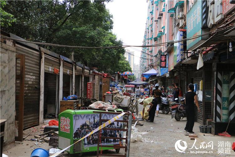 市民們自覺搬運占道物品。 人民網長沙7月20日電 (萬麗君)今天上午,隨著城管人員揮錘,位于長沙市天心區赤嶺路街道南大橋社區的違規菜市場進入拆違階段,拆除面積近8000平米。在街道和社區的妥善安排下,原有菜市場商戶均已入駐到新農貿市場。 攤販占道、道路濕滑……存在于樓棟之間的湖南開關廠農貿市場曾讓小區居民苦不堪言。如今,市場被正式拆除,還小區居民一個整潔宜居環境,讓周圍的居民們點贊不斷。 菜市場環境臟亂差 引發市民擔憂 上午,記者在現場看到,在湖開小區的新2棟和新3棟之間,密密麻麻擺滿了攤位,僅有非常狹窄的通道供市民通行,爛菜葉、塑料袋等垃圾隨處可見,環境十分混亂。 “臟、亂、差。”在小區經營雜貨鋪的黃老板看著就擺在自己店鋪門口的小攤,連連搖頭,“道路坑坑洼洼,雨天濕滑,都不敢讓老人小孩出門,而且還存在很嚴重的消防隱患。” 據菜市場所屬南大橋社區的社區書記許艷介紹,開關廠農貿市場成立于2000年,除本身市場攤位,更有不少本地人在沿路臨時擺攤設點,導致沿線垃圾成堆, 衛生環境差, 管理難度大,居民投訴不斷。 針對居民所反映的問題,7月初,赤嶺路街道、南大橋社區聯合執法部門對違規菜市場下達了限期搬離通知。今天上午,消防、市容、城建、安監等執法部門對違規露天菜市場進行取締拆除。 原有商戶搬至商業街 升級改造還市民宜居環境 違規露天菜市場被拆,原有的70多名商戶如何安置?據了解,在街道和社區的協調下,幾乎所有商戶都已搬至地下的興威商業街,重新營業。商業街距離原有菜市場不過5分鐘步行路程,對于商戶經營并未造成太大影響。 在露天菜市場做了20多年蔬果生意的賀德意也搬到了地下農貿商場,地面干凈整潔、時常有熟客光顧,讓他很快適應了新的經營環境。 “今天的菜都賣的差不多了,都是熟客呢!” 賀德意說,搬下來之后,生意并沒有大幅減少,而且地下商場不僅環境好,社區還安裝了電風扇散熱,比在露天經營要相對舒服。 據興開鋪商業運營中心主管盛艷新介紹,目前已有78戶原有露天菜市場商戶搬入地下農貿商場。針對商戶變多的情況,運營中心將增加抽風系統,打通樓道,改善商戶的經營環境,讓居民買菜更加方便。 據悉,露天菜市場拆除之后,社區將會進行提質改造,破損的水泥路將被全部更換為瀝青路面,并且增加綠化,變成居民休閑娛樂的好去處。