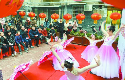 1月28日,長沙市雨花區左家塘街道王公塘社區,文藝團隊為居民表演舞蹈《盛世花開》。當天,該社區舉辦“誠信贏未來,多彩迎新春”活動,豐富居民的文化生活。