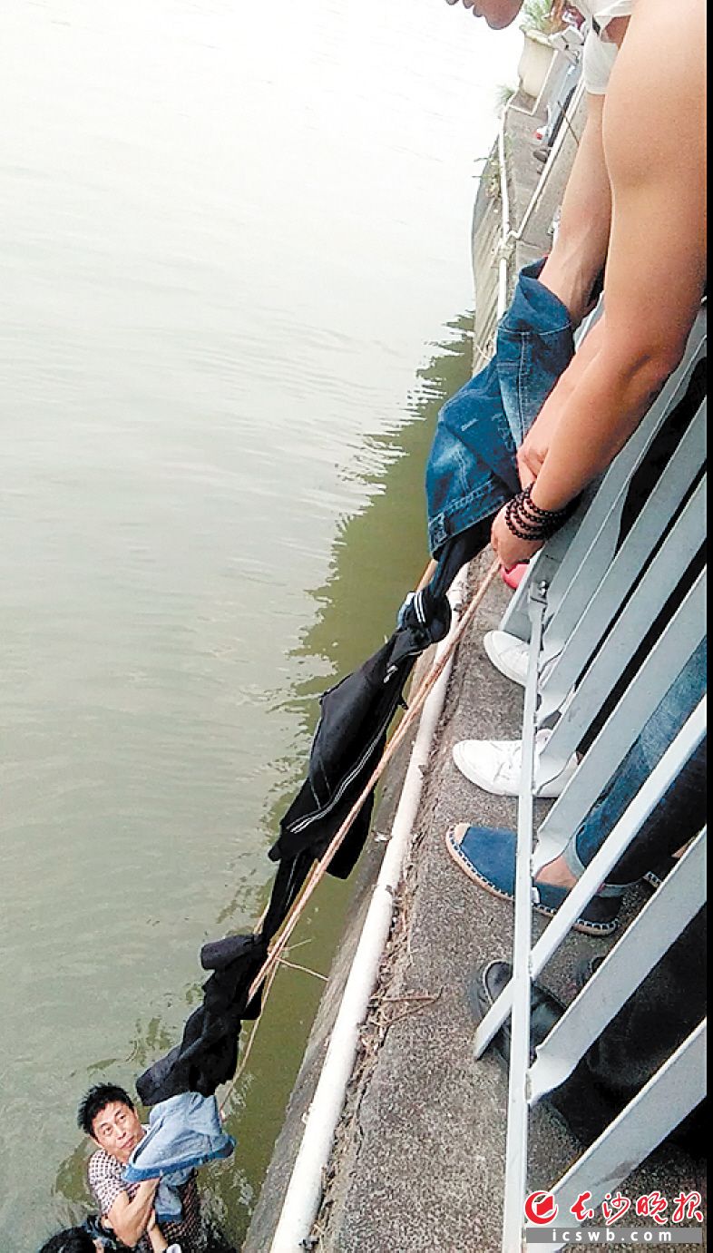 4月30日傍晚,一名女孩在長沙橘子洲失足跌落湘江,父親立馬跳下去營救。游客紛紛脫衣結成繩子,穩住被困父女,直至他們獲救。昨日,參與救援的湖南商學院大四學生徐守寶說:“是大家的愛心和智慧救了這對父女。”