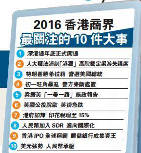 2016年香港商界最關注十件大事:“深港通”開通居首