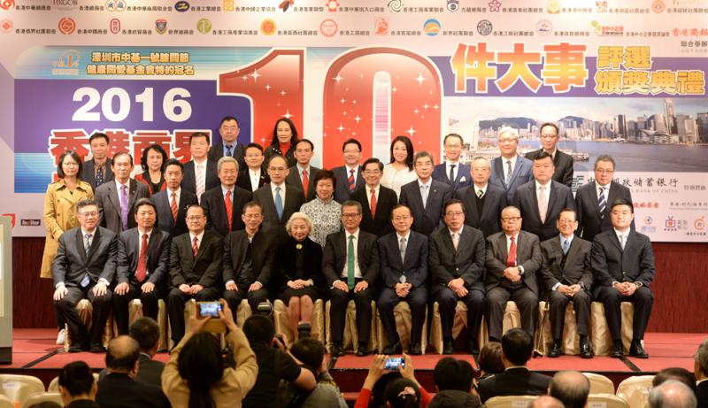 據《魅力香江》節目報道:由《香港商報》以及香港多家商會和社團聯會共同舉辦的“2016香港商界最關注的10件大事”評選23日舉行頒獎典禮。綜合評委會意見,以及商界和讀者的投票結果,最終評選出的“2016香港商界最關注的10件大事”依次是:“深港通”年底正式開通;人大“釋法”遏制“港獨”,高院裁定梁、游失議席;特朗普勝希拉里,當選美國總統;初一“旺角暴亂”,全城同聲譴責;梁振英“一帶一路”施政報告;英國公投脫歐,英鎊急跌;特區政府將購房印花稅增至15%;人民幣加入SDR邁向國際化;香港IPO全球稱霸,郵儲銀行成集資王;美元強勢,人民幣承壓。