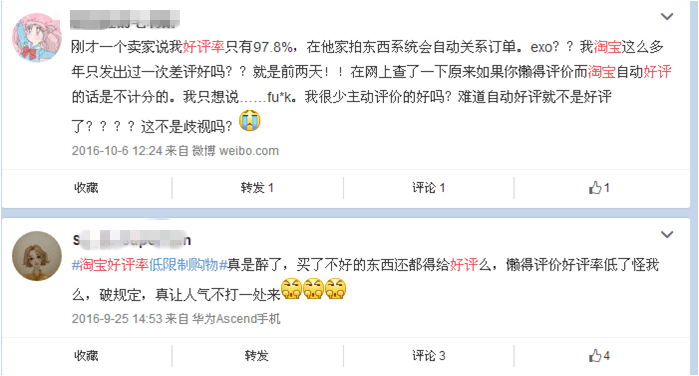 如果這些遭遇還算個(gè)例,那么最近有些淘寶賣(mài)家發(fā)出的大招,則深深地影響到了一大批消費(fèi)者。買(mǎi)家在淘寶上給出的好評(píng)率低于一定數(shù)值,就有可能被淘寶賣(mài)家拒絕下單。以后,你還敢給差評(píng)嗎?