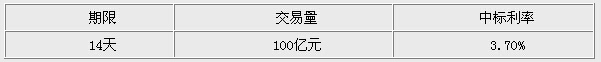 中國經(jīng)濟(jì)網(wǎng)北京8月21日訊(記者 韋偉)今日,央行以利率招標(biāo)方式開展為期14天100億正回購操作,中標(biāo)利率為3.70%。