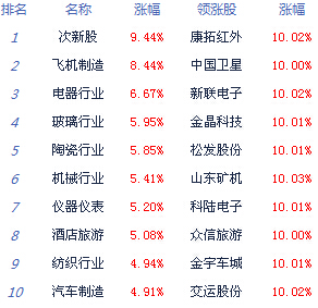 A股市場板塊及個股漲跌幅排行