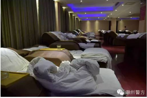 9月25日雨夜,安徽滁州警方異地用警,從明光、定遠、全椒調(diào)集20余名警力,對暗地里提供“特殊服務(wù)”的永慶浴場進行了暗訪突襲。