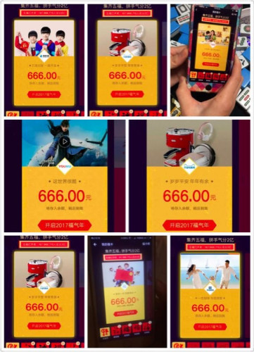 支付寶的五福紅包從1月18日開(kāi)始推出后,隨即成為一場(chǎng)全民狂歡,五福相關(guān)話題幾乎每天都出現(xiàn)在微博熱搜。有網(wǎng)友笑稱(chēng),現(xiàn)在簡(jiǎn)直是看到“福”字就條件反射掏出手機(jī),還有人用糖果、口紅甚至雞骨頭拼出“福”字來(lái)掃,可謂腦洞大開(kāi)。還有網(wǎng)友說(shuō),幫父母集齊了五福,順便教會(huì)了爸媽用智能手機(jī)。