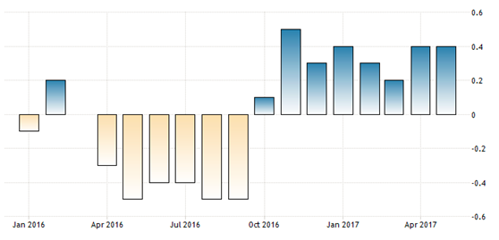 7月20日,日本央行將日本2%通脹目標(biāo)的達(dá)成時(shí)間從2018財(cái)年(即2019年3月份之前)推遲至2019財(cái)年(即2020年3月份之前),這已經(jīng)是第六次推遲。另外,該行還下調(diào)了2017財(cái)年核心通脹預(yù)期至1.1%,此前為1.4%,下調(diào)2018財(cái)年核心通脹預(yù)期至1.5%,此前預(yù)期為1.7%。
