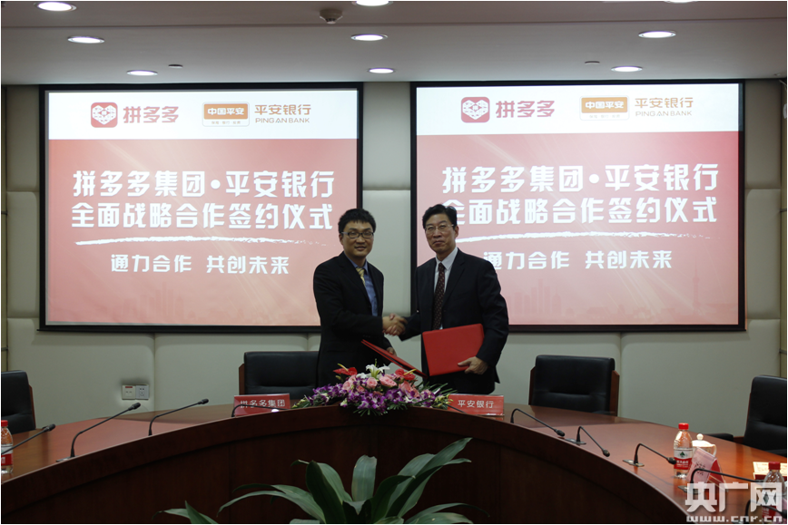 拼多多董事長(zhǎng)黃崢表示,此次同平安銀行的戰(zhàn)略合作將深化雙方的信用大數(shù)據(jù)互換,建立商戶信用體系,致力于為消費(fèi)者提供更好的購(gòu)物體驗(yàn)。