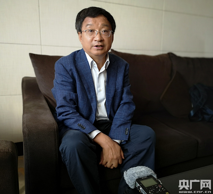 中國工程院院士萬建民接受中央廣播電視總臺央廣記者專訪(中央廣播電視總臺央廣記者 蔣勇 攝)