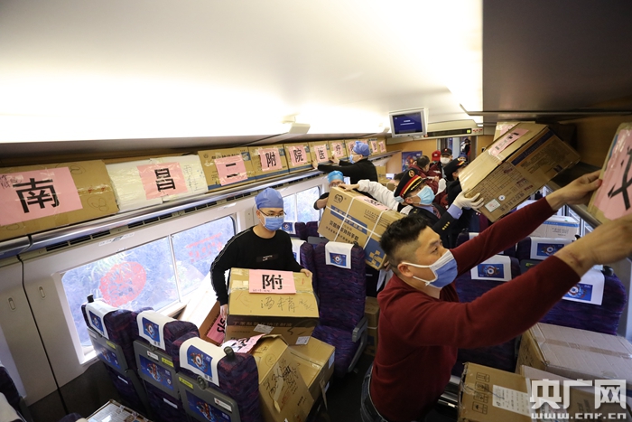 在疫情防控中,鐵路部門(mén)運(yùn)用高鐵、普速客車(chē)行李車(chē)和貨車(chē)整車(chē)等多種途徑,特別是充分發(fā)揮高鐵快速便捷優(yōu)勢(shì),迅速向湖北武漢等疫情嚴(yán)重地區(qū)運(yùn)送防控人員和防疫、生活物資。