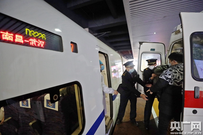 為確保醫(yī)療隊(duì)及物資以最快速度上車(chē),南昌站及時(shí)開(kāi)辟“綠色通道”,抽調(diào)30多名黨員協(xié)助裝運(yùn)醫(yī)療物資,沿途不辦理客運(yùn)業(yè)務(wù)。最終只用了101分鐘,當(dāng)天下午3點(diǎn)46分,這趟D3226次動(dòng)車(chē)組專(zhuān)列抵達(dá)湖北武漢。