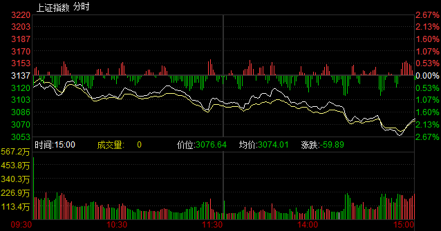 收盤:滬指震蕩下調跌1.93% 失守3100點